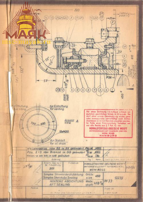 Дейдвудное уплотнение Simplex (Симплекс) УС330, УС355, УС380, УС400, УС420, УС450, УС500, УС560